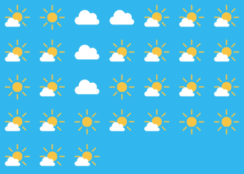 Die Wetter-Symbole zeigen das tägliche Wetter, jeweils gemessen um 12:30 Uhr mittags