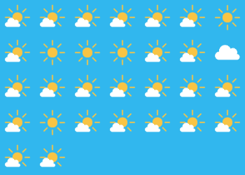 Die Wetter-Symbole zeigen das tägliche Wetter, jeweils gemessen um 12:30 Uhr mittags
