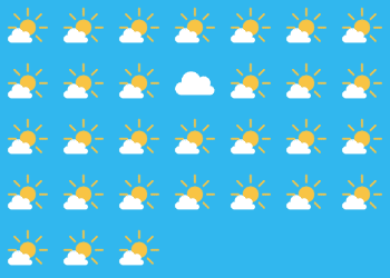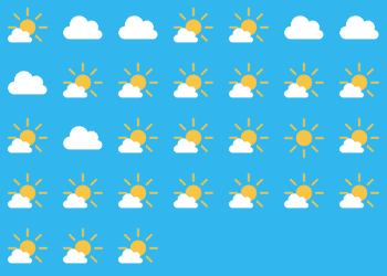 Die Wetter-Symbole zeigen das tägliche Wetter, jeweils gemessen um 12:30 Uhr mittags