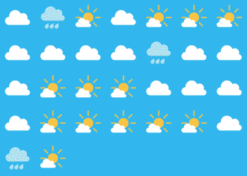 Die Wetter-Symbole zeigen das tägliche Wetter, jeweils gemessen um 12:30 Uhr mittags