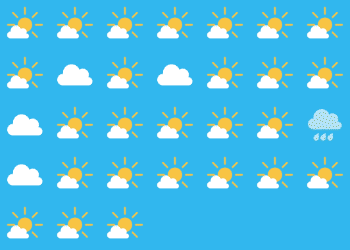 Die Wetter-Symbole zeigen das tägliche Wetter, jeweils gemessen um 12:30 Uhr mittags