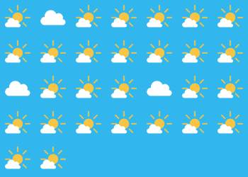 Die Wetter-Symbole zeigen das tägliche Wetter, jeweils gemessen um 12:30 Uhr mittags