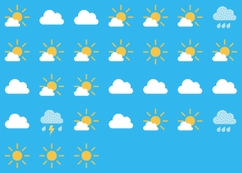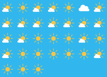 Die Wetter-Symbole zeigen das tägliche Wetter, jeweils gemessen um 12:30 Uhr mittags